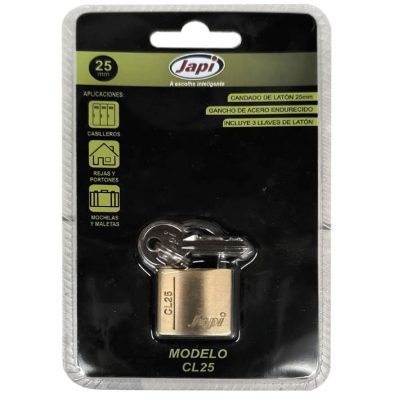 Candado de Latón 25mm, Gancho Endurecido Blister, 3 Llaves