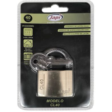 Candado de Latón 40 mm, 3 Llaves, Gancho Endurecido Blister, 3 Llaves