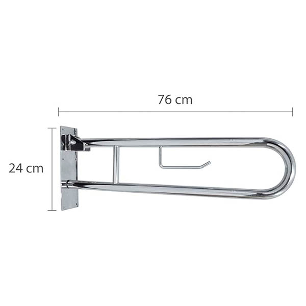 Barra de Seguridad Articulada de Acero Inoxidable con Traba en la Posición Vertical y con Porta Rollo Ø 32mm (1(1/4″)) x 76x10x24 cm