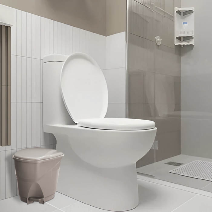 El basurero beige para baño de Astra es un accesorio práctico y funcional que combina diseño moderno con resistencia, con una capacidad de 16 litros, resulta ideal para mantener la limpieza y el orden en espacios reducidos como baños y lavaderos.
