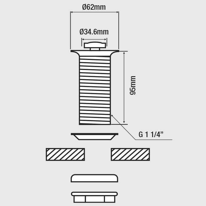 Desague 1 1/4″ Plástico Blanco Pop Up para Lavamanos