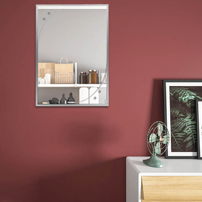 Dale a tus espacios un toque de elegancia y amplitud con este espejo rectangular de 80 x 60 cm. Su diseño con bordes biselados aporta un acabado sofisticado y moderno, ideal para baños, dormitorios, salas o pasillos.