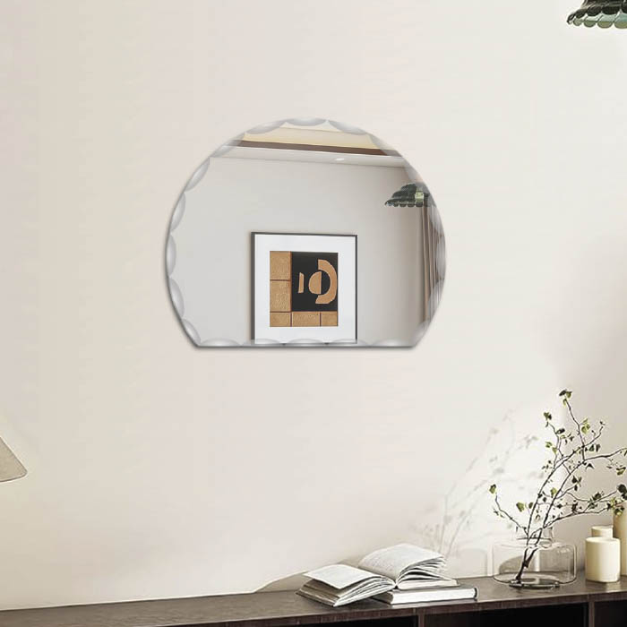 Dale un estilo único y elegante a tu hogar con este espejo de diseño semicircular y borde biselado. Con un tamaño de 60 x 50 cm y espesor de 5 mm, ofrece un reflejo nítido y brillante, aportando luminosidad y amplitud a cualquier espacio.