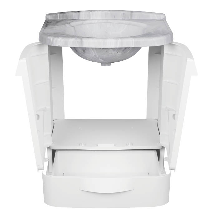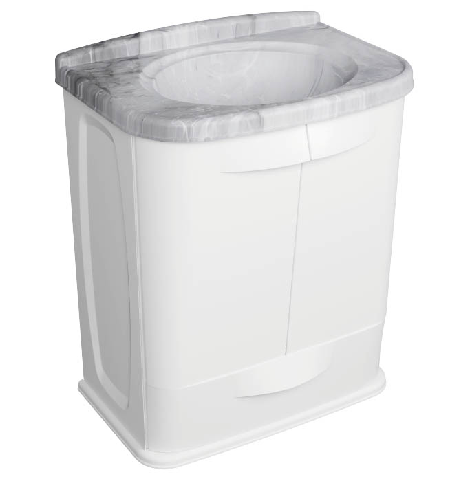Gabinete Plástico Blanco aéreo, Incluye Lavamanos Marmoleado, Sifón, Desagüe y fijaciones 45x35x58 cm.