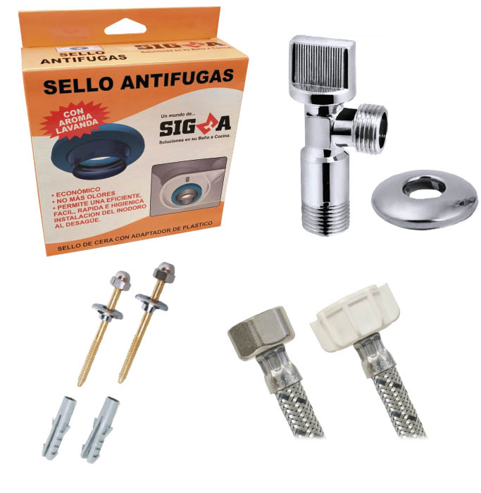 Kit Instalación WC, Sello Cera + Llave angular+ Flexible Sigma + Set Anclaje