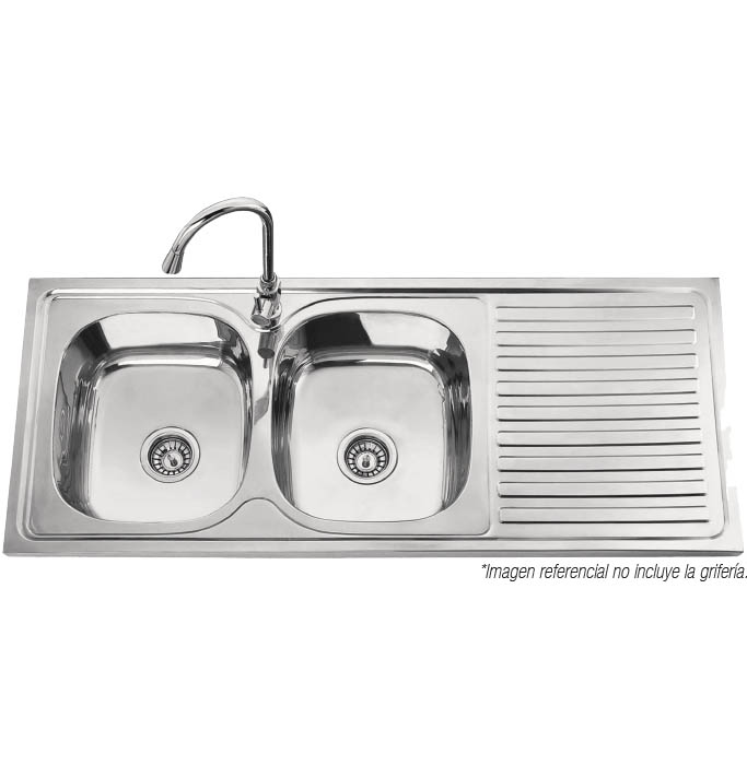Lavaplatos de Acero Inoxidable 120 x 50 cm, Celador Derecho, Para Monomando, e= 0,7 mm con Desagüe y Sifón (Doble Poza)