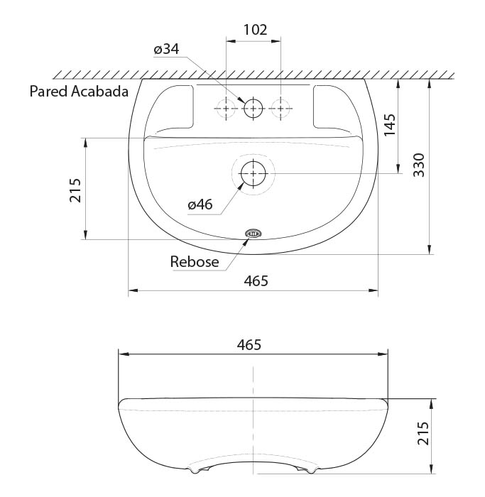 Lavamanos Blanco Modelo Aruba 45,5 x 34,0 cm