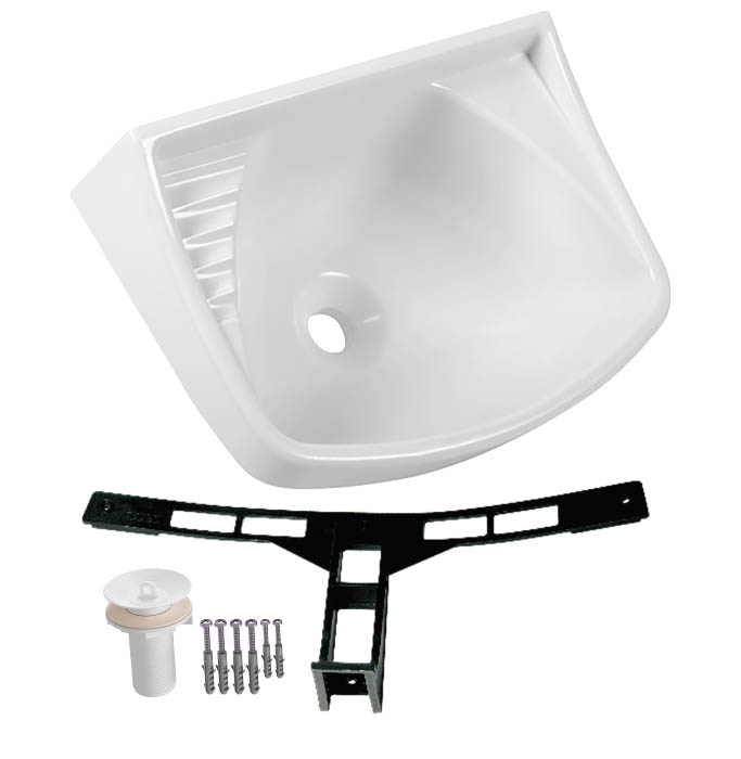Lavamanos Plástico Blanco con Desagüe y Fijaciones, 36 x 26 cm 4,8 L