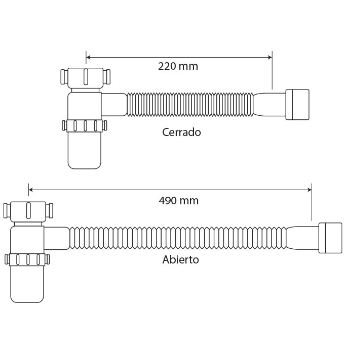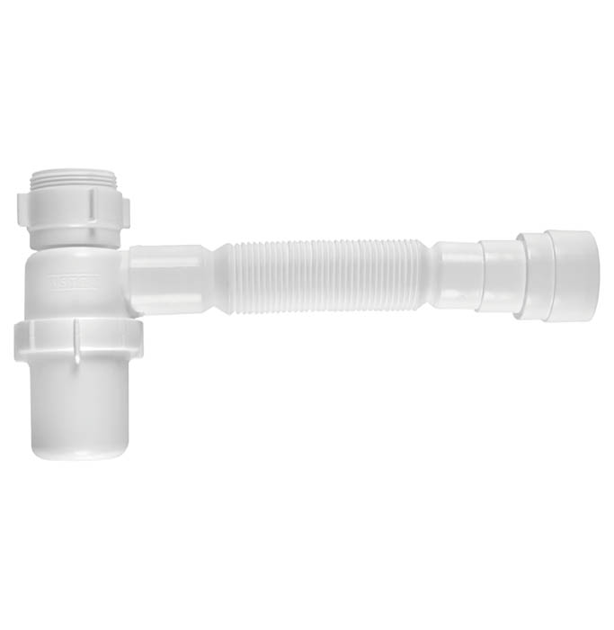 Sifón Plástico Corrugado Blanco con Botella Universal