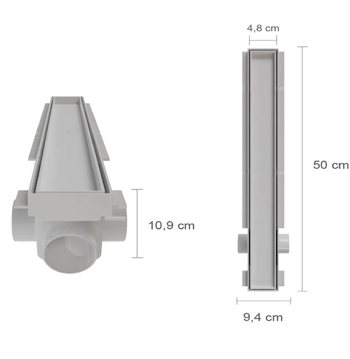Sumidero lineal Plástico Blanco 50 cm con Rejilla Oculta