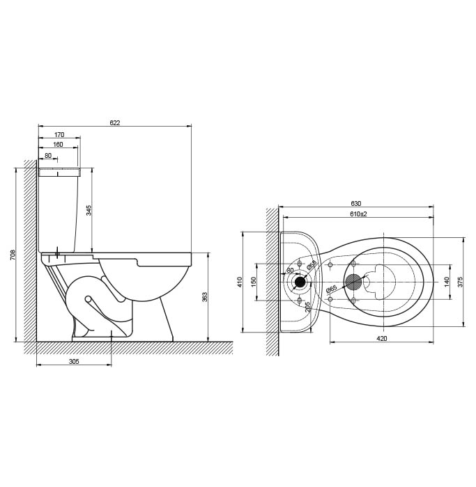 Two Piece Descarga Piso 30 cm, Modelo Cancún con Botón Central Dual Flush Italgrif