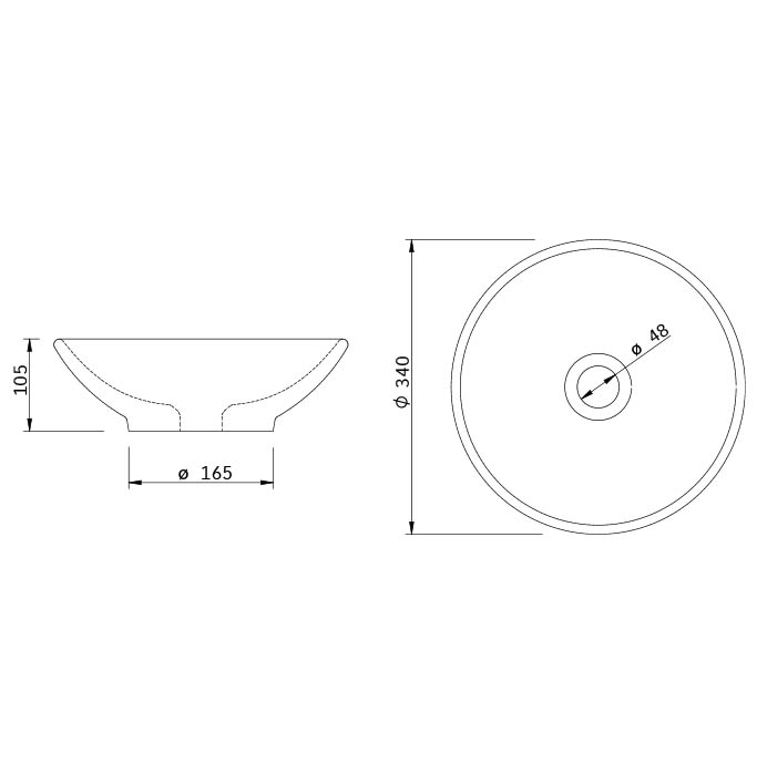 Vanitorio de Cerámica para Sobreponer Redondo, Modelo Rimini 34,0×10,5×16,5 cm