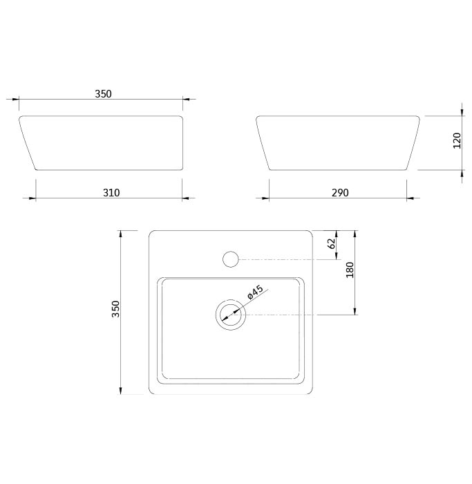 Vanitorio de Cerámica para Sobreponer Cuadrado, Modelo Bari 35,0×35,0x11,5 cm