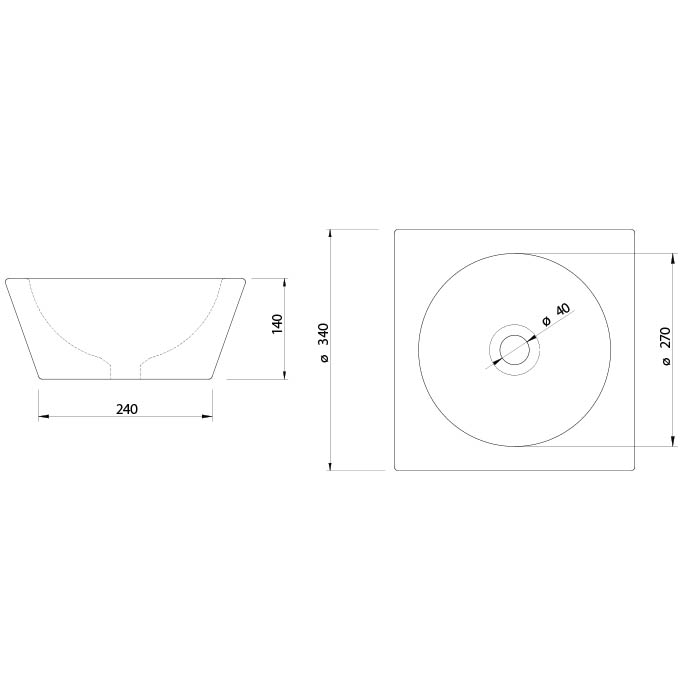 Vanitorio de Cerámica para Sobreponer Cuadrado, Modelo Turin 34x34x14 cm